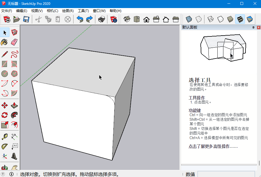 SU中虽然不支持选中顶点,但我们可以使用移动工具拖拽顶点,此外也可以用移动工具拖拽边线和面,实现变形的效果。