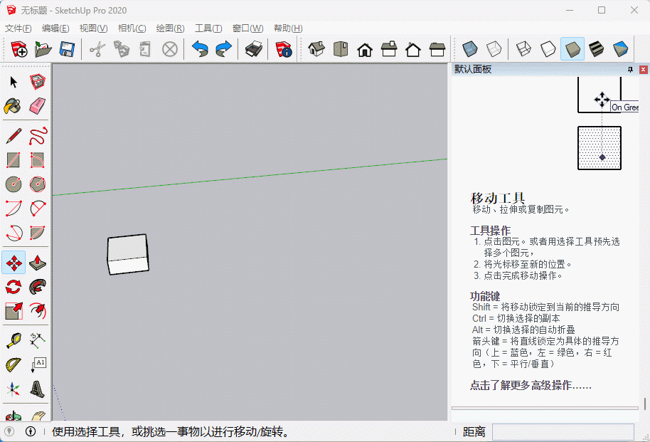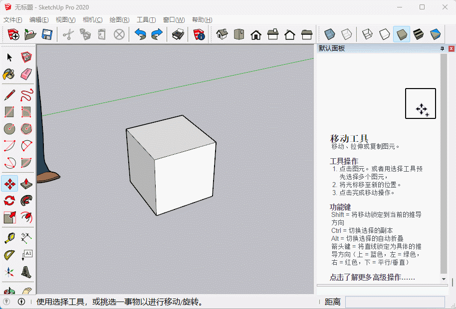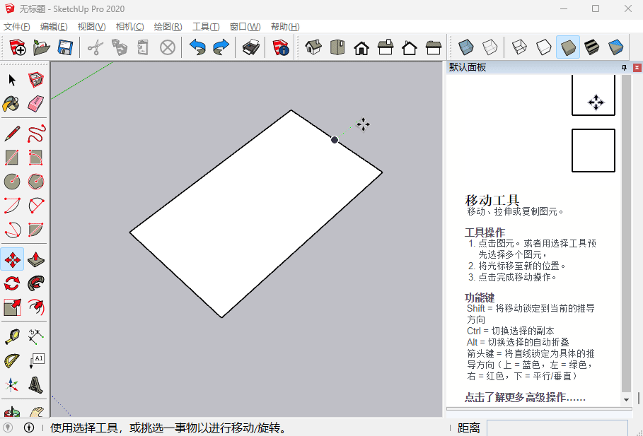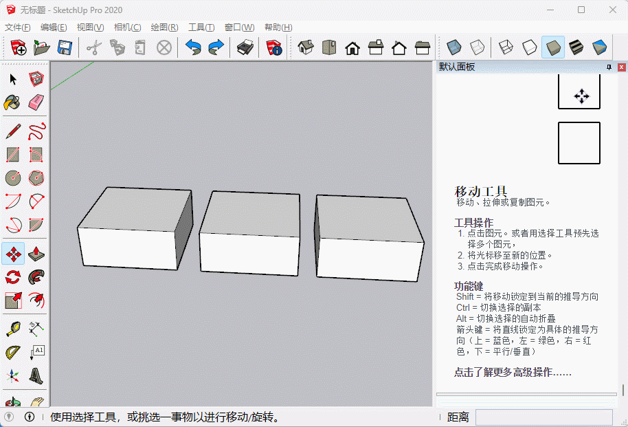 SU中的移动工具非常强大,不仅可以移动物体,还可以移动物体上的点线面使其变形,此外移动复制也非常常用,移动复制配合阵列操作能够极大提升我们的建模效率。