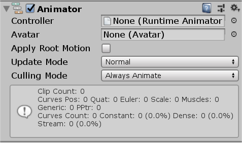 我们可以把一个Sprite拖进Scene视图,然后点击Add Component按钮,给这个Sprite添加一个Animator组件。拥有Animator的Sprite,其Sprite Renderer组件里配置的Sprite图像在运行时就没有效果了,取而代之的是动态的动画效果。