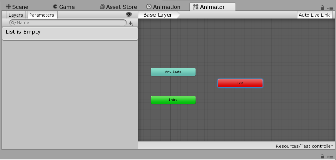 上图是Animator视图,用于动画状态机配置,我们每创建一个Animation Clip,都会在其中代表一个动画状态,我们可以通过配置动画之间的转移条件实现动画。
