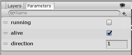 在Animator视图左侧,可以看到参数设置,状态转移就是通过这些参数实现的。