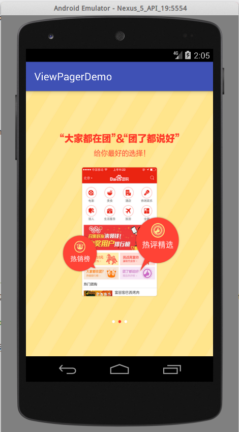 注意:这个ViewPager控件在support v4包中,因此必须使用类全名android.support.v4.view.ViewPager。