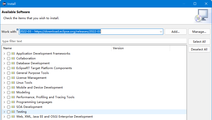 推荐方式是直接安装不带有任何插件的Eclipse基础平台,地址:https://download.eclipse.org/eclipse/downloads/