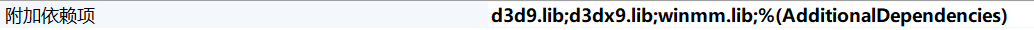 然后在链接器->输入中,添加d3d9.lib、d3dx9.lib、winmm.lib(这个不是DX库但我们会用到,它是Windows的音频库,win32 API章节有介绍过)