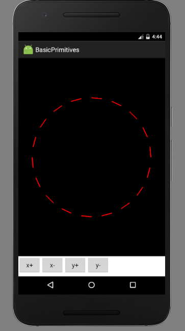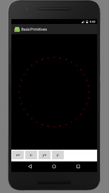 23-32行代码沿着一个圆生成了一些顶点,39行为了方便起见将List转FloatBuffer的过程封装进了一个类,这里就不展开了,42行指定绘制点的大小,默认大小实在太小了,根本看不清。43行调用glDrawArrays()函数,传入GL_POINTS进行绘制。