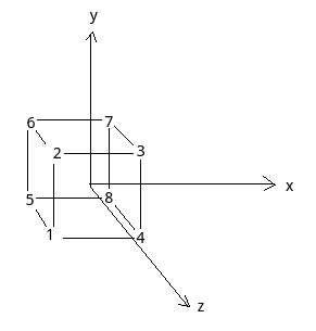 为了简单,这里使用了顶点索引来画图,按上图中顺序定义好的顶点顺序绘制三角形面可能没法恰好构成一个立方体,所以用索引重新指定一下顶点绘制顺序,使其恰好构成一个立方体,60行调用glDrawElement()使用索引表进行绘制,参数见注释。注意:图里顶点标号是从1开始的,但代码中实际应该从0开始。