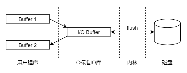 用户程序调用C标准I/O库函数读写文件或设备,而这些库函数要通过系统调用把读写请求传给内核(以后我们会看到与I/O相关的系统调用),最终由内核驱动磁盘或设备完成I/O操作。C标准库为每个打开的文件分配一个I/O缓冲区以加速读写操作。