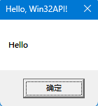 MessageBox(NULL, TEXT("Hello"), TEXT("Hello, Win32API!"), MB_OK);