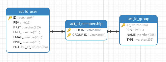 Activiti中,使用act_id_user、act_id_group、act_id_membership存储用户信息、用户组信息,以及两者的关联信息。