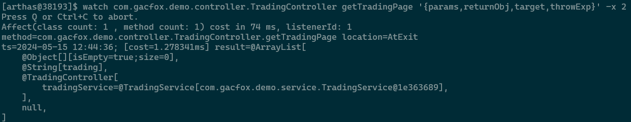 watch com.gacfox.demo.controller.TradingController getTradingPage '{params,returnObj,target,throwExp}' -x 2