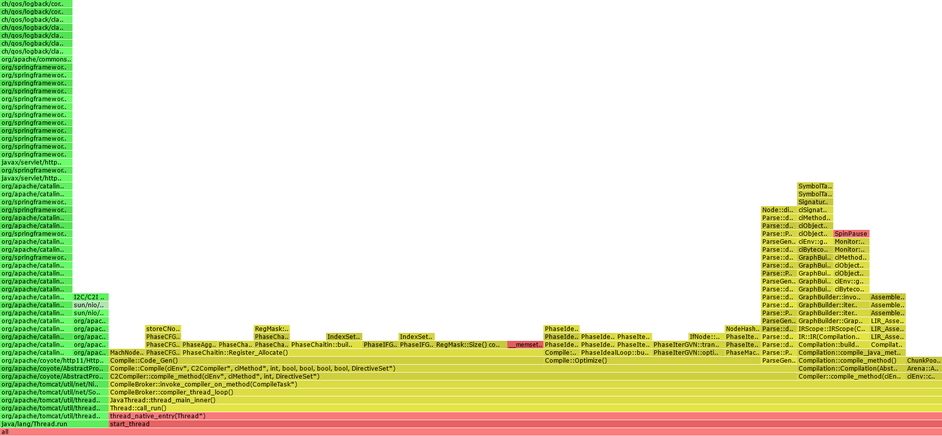 火焰图的横轴表示时间,纵轴表示方法调用栈,每个矩形块代表一个方法调用,矩形的宽度表示该方法在整个时间范围内的执行时间,而矩形的垂直位置表示调用栈的深度。因此火焰图从顶部到底部的方向可以看出方法的调用层次,而每个矩形的宽度则反映了方法的执行时间。通过观察火焰图,开发人员可以快速定位到执行时间较长的方法和调用链,并深入分析这些部分的性能问题,例如是否存在不必要的方法调用、是否存在耗时较长的方法等,这样就可以有针对性地进行性能优化,提高应用程序的响应速度和整体性能。