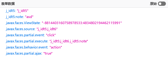 在视图层,我们使用了<f:ajax execute="note"/>,该标签用于AJAX更新,其中execute属性表示要更新的字段名,它对应于<h:inputText>的id属性,此时我们点击按钮时,对应ManagedBean的setNote()方法就会被触发,此时我们就实现了AJAX提交数据。