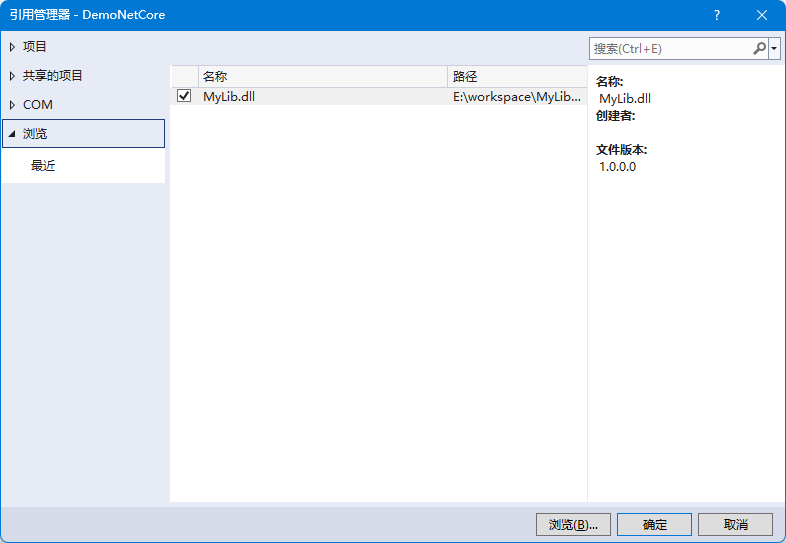 切换到需要引用dll文件的工程,点击项目->添加引用,选择我们生成好的dll文件。